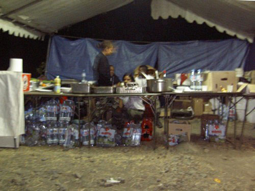 Ich verpflegte mich ausführlich (Hähnchenteile mit Reis, Ravioli, Cola). Kurz vor Mitternacht, legte ich mich zum Schlafen in ein Zelt.