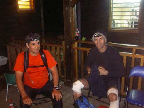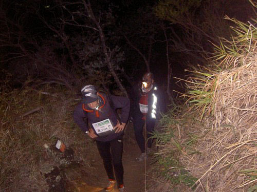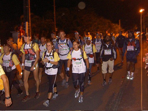 In annehmbarer Verfassung kam ich auf dem Sportplatz in Cilaos an. Die Zeit drängte, spätestens um 2 Uhr musste man die Station verlassen haben. Ich aß etwas, schlief etwa eine Stunde und um 1:13 Uhr verließen wir den Sportplatz, liefen durch die Stadt und waren bald wieder in der Dunkelheit.