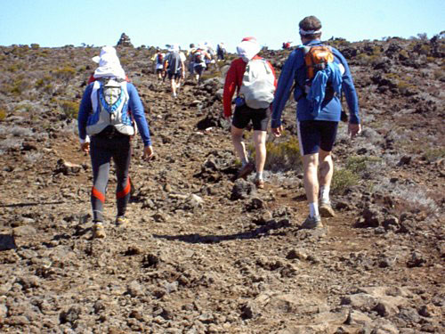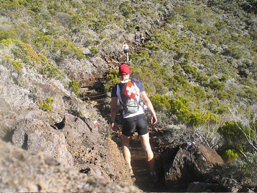 Auf der winzigen Insel Reunion, vulkanischer Ursprung, 50 km breit, 70 km lang, östlich von Madagaskar gelegen, gibt es den Lauf „Le Grand Raid“, der dieses Jahr zum 14. Male stattfand. Die Eckdaten wie 143 km, 8.600 Höhenmeter sind einigermaßen anspruchsvoll, betrachtet man aber das Zeitlimit von 63 Stunden, klingen die Zahlen nicht mehr so extrem.
