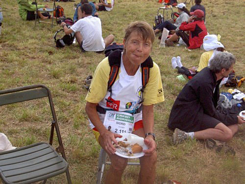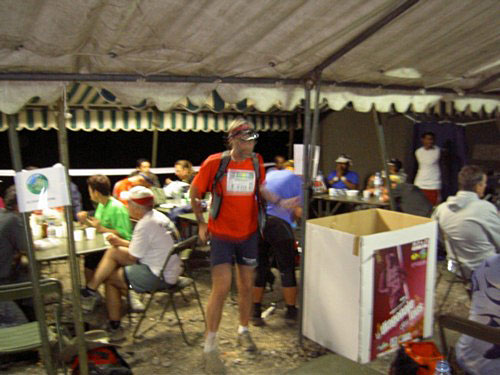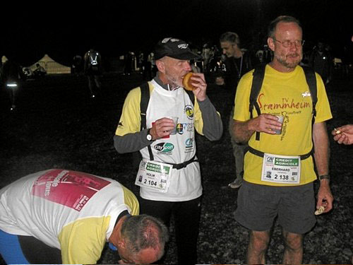 Die Verpflegungsstelle „Mare à Boue“ war erreicht. Ich aß Hähnchenteile, Reis, Brot, Nudelsuppe, Hähnchenteile, Nudeln und trank immer wieder Cola und Wasser. Nacheinander kamen Bernhard und Holm an und ganz zum Schluss, kurz bevor wir wieder los zogen, war auch Sigrid da.