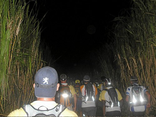 Die ersten vier Kilometer verliefen auf einer beleuchteten Straße parallel zur Südküste. Kurz vor Mare Longue ging es dann scharf links weg durch Zuckerrohrfelder Richtung Norden.