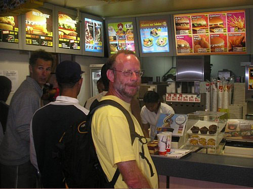 Wie stets trank ich mehrere Becher Nudelsuppe, dazwischen Cola und Wasser.
