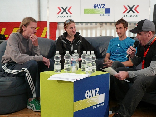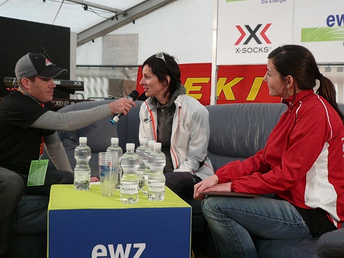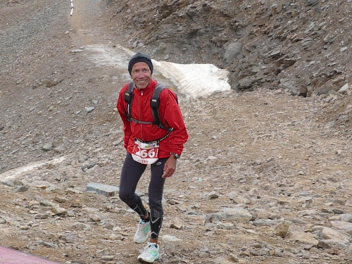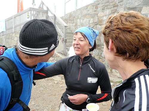 An der Verpflegungsstelle greife ich mir zwei Becher und hole mir meinen Rucksack. Schnell was Warmes anziehen. Für ein paar Bilder begebe ich mich noch in den Zielbereich und fahre dann mit der Bergbahn nach unten.