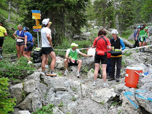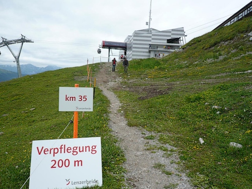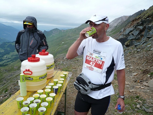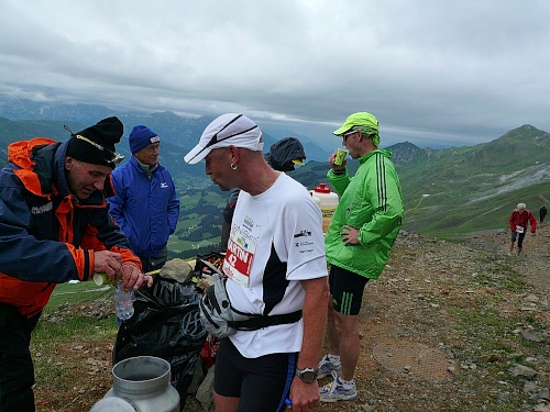 Alle fünf Kilometer Mineraldrinks, Wasser, Cola, Energieriegel, Bananen, Gel und Bouillon. Am Aufstieg zum Rothorn sechs Verpflegungsstellen .