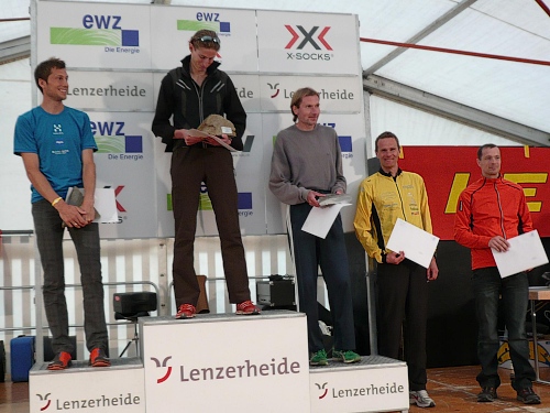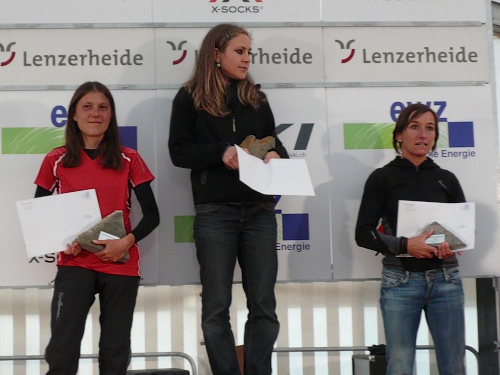Ja, heute hat’s lang gedauert, denn das Zeiteisen zeigt 6.36.35 Stunden (Platz 232). Da war ich schon mal eine geschlagene Stunde schneller. Aber die rund 300 Fotostopps, die brauchen halt a a bisserl Zeit. Ach ja, mein Vereinskollege Roland wird Gesamtzweiter beim 20-Meilen-Rennen. Ich glaub, den schleif ich mal zu einem Bergmarathon mit. Ach ja, die Sieger erhalten einen Felsbrocken vom Rothorn auf einem Sockel, damit wir künftig weniger Höhenmeter laufen müssen. Aber da braucht’s genug Geduld.