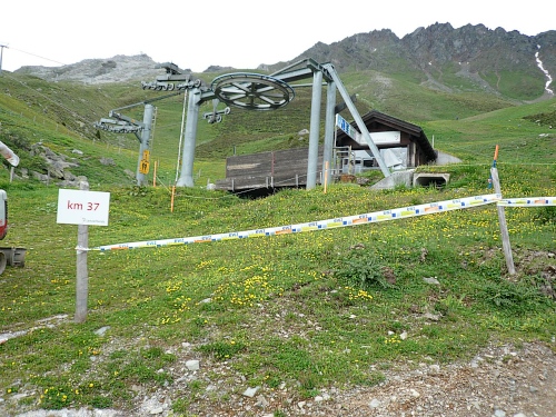 Am Foil Cotschen (Kilometer 39,9; 2470 Meter) gibt’s noch Mal reichliche Auswahl auf der Speisekarte. „Habt’s Ihr Bier für an Bayern?“ Auch mein Appell an die christliche Nächstenliebe und das Teilen mit Durstigen verhallt ungehört. Nur Kopfschütteln sehe ich bei den Helfern. Man schickt mich weiter.