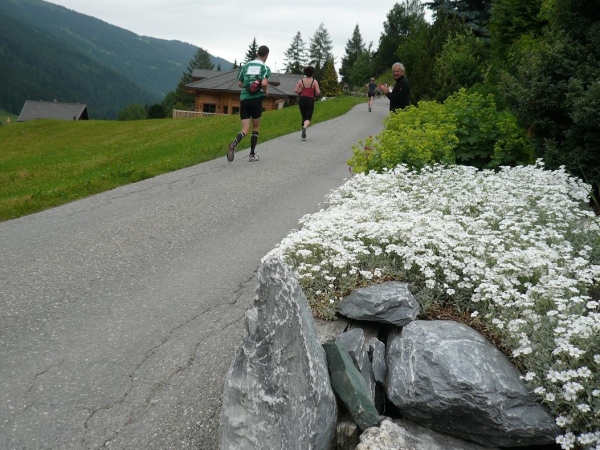 650 Höhenmeter sind hinter uns, nur noch zwei Höhenkilometer, eine Aussicht zum Grausen? Nein, denn der Ort bietet schöne Ansichten: Die längste Rodelbahn der Welt, die von Pradaschier herunter führt, das Posthotel oder die mit Blumen geschmückten Gärten.