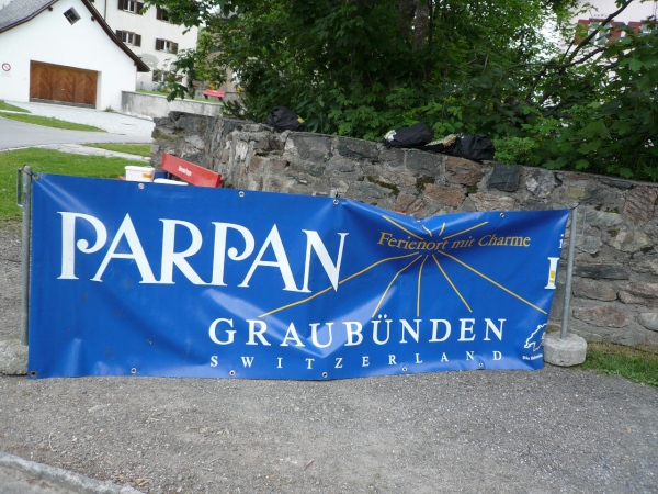 Der See wird an einer Unterführung der Voa Principala (Hauptstraße) verlassen. Jenseits führt die Betonpiste zur Talstation der Rothornbahn. Auf Patric wartet schon Frau mit Kind. Ich sehen ihn noch gerade in den Kinderwagen hinein lugen, dann macht er sich wieder auf die Socken. Und ich hinterher. Ich hoffe nicht, dass ich mit seiner Begleitung und Betreuung überfordert bin. Denn meine Haxen fühlen sich schon müde an.