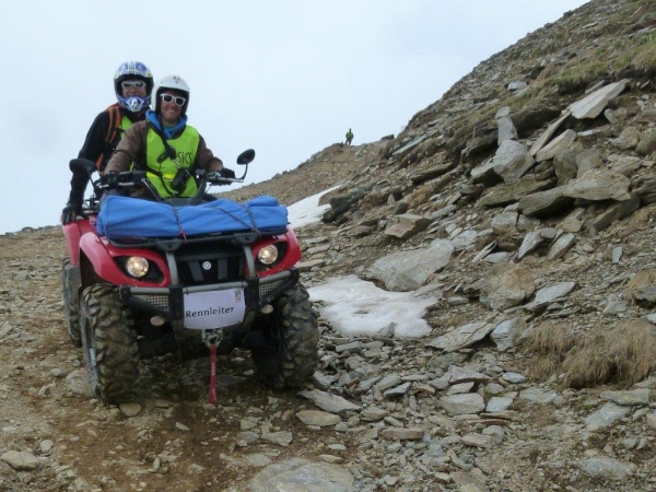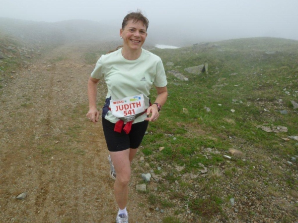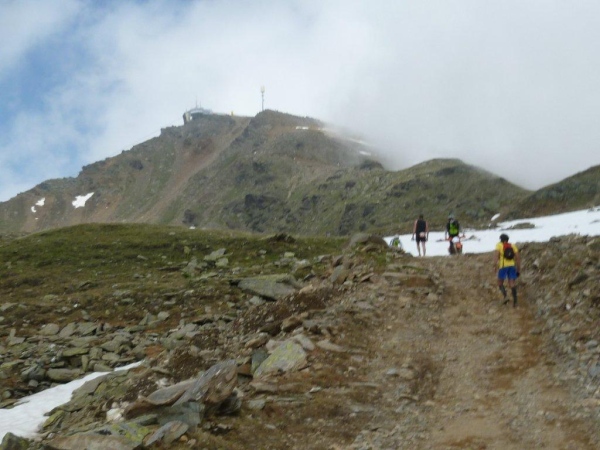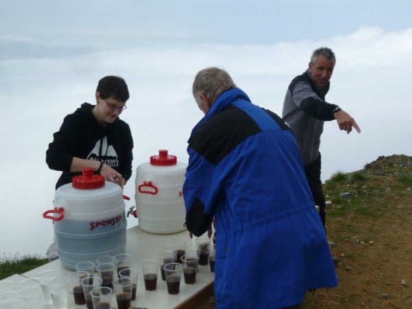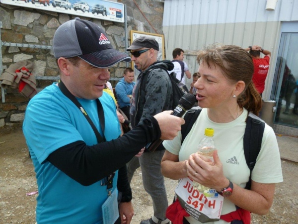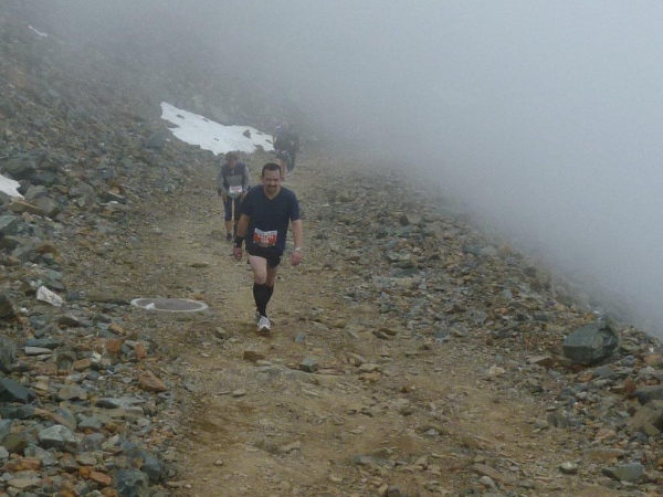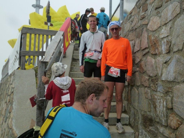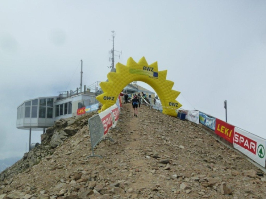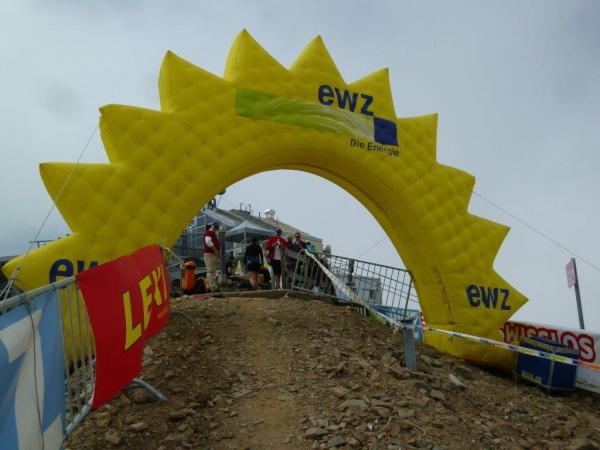 Nebelschwaden und blauer Himmel wechseln sich beim Erklimmen des Gipfels ab. Sturm des Gipfels ist mindestens von der äußeren Erscheinungsform eine absolute Übertreibung. Die Höhenluft lässt keinen Exploit auf den letzten Metern zu, aber das Gefühl der Eroberung ist beim Überschreiten der Zeitmessmatte bei mir schon vorhanden. Als Erinnerung daran gibt es einen Pin, welcher im Gegensatz zu einer Medaille nicht nur unmittelbar nach dem Rennen getragen werden kann. Tragen darf ihn jeder mit Stolz, der ihn selbst in Empfang genommen hat.