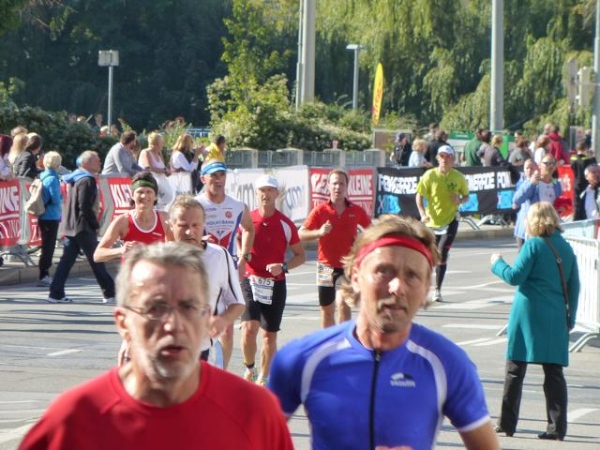 Am Ostufer angekommen ist in der Party-Area dieses Mal noch etwas mehr Aufregung angesagt. Wegweiser und zahlreiche Helfer sorgen dafür, dass die Läufer in den richtigen Kanal geleitet werden: Marathonis geradeaus, Halbmarathonis nach rechts. So ganz selbstverständlich ist das nicht, lassen wir (Männer) uns doch allzu gerne von den am Straßenrand tanzenden Cheerleadermädels ablenken. Für die Läufer der Halbdistanz ist der Heimweg angesagt, der sie mitten durch die Altstadt und über die Herrengasse (die den Marathonis verwehrt bleibt, was mich durchaus ein wenig neidisch stimmt) und den Opernring ins Ziel führt.