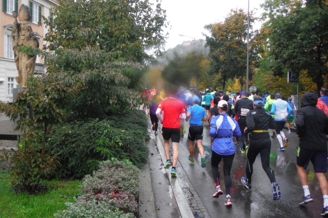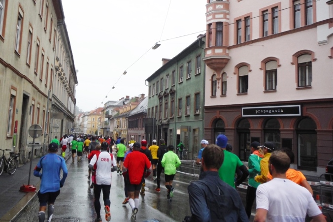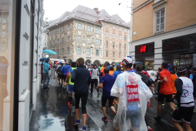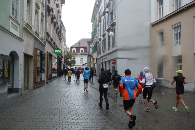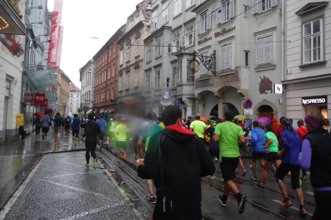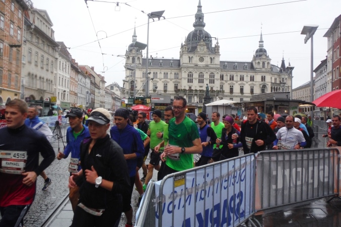 Länger dauert es, die tatsächliche Ausgabestelle zu finden. Als Nichtösterreicher folge ich nämlich der Beschilderung Startsackerlausgabe, nur um dort zu erfahren, daß ich zuerst meine Startnummer an anderer Stelle abholen muß. Nach einer kurzen Einweisung habe ich aber auch diese schnell gefunden. Als Zugabe erfahre ich, daß in diesem Haus früher einmal Johannes Keppler lehrte. Sein Werk vom Geheimnis des Weltenbaus erweitete das damalige Wissen situationselastisch. Ganz so fundamental sind meine Erkenntnisse heute zwar nicht, aber auf dem Weg zu unserer Unterkunft lerne ich schon mal das bergige Graz kennen. Eine Erfahrung, die mir beim Lauf glücklicherweise erspart bleiben wird.