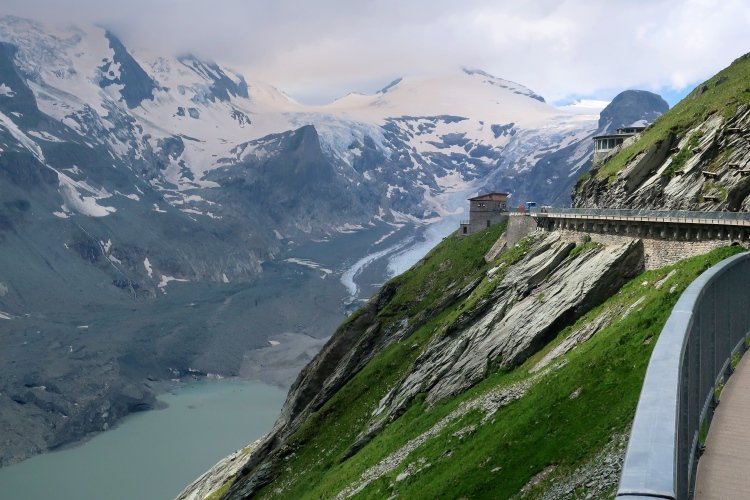 Die Anfahrt nutze ich sogleich zu einem Abstecher zum Ziel des Laufs: der Kaiser Franz-Josefs-Höhe. Just im Entstehen sehe ich den Zielbogen am Rande des Abhangs, dort, wo die Läufer morgen nach unzähligen finalen Stufen aus der Tiefe kommend keuchend ankommen werden. Dahinter das in seinen Dimensionen geradezu monströse Berghaus samt noch gewaltigeren Parkdecks, ausgelegt auf täglichen motorisierten Besucheransturm. Doch landschaftlich wahrlich sensationell gelegen ist dieser Ort. Mit Panoramablick auf das mächtige, in ewigem Weiß erstrahlende, wenn auch gerade wolkenverhangene Großglocknermassiv, die ins Tal quellende Pasterze und die Gletscherseen in deren Auslauf.