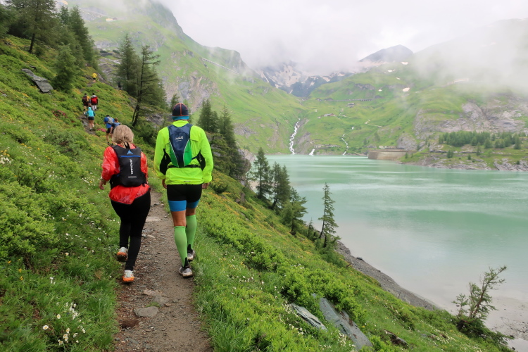 Schon seit 1953 staut der so malerisch auf 2.000 m Höhe ins Hochgebirge eingebettete Stausee mit seinen beiden Mauern das Schmelzwasser des Pasterzengletschers. Für den Lauf bedeutet er vor allem: Ab hier beginnt das läuferische „Filetstück“ der Veranstaltung, ein Hochgebirgskurs der optischen Superlative. Der Umstand, diese Kulisse trotz der bisherigen Wetterbedingungen nun doch auch wahrnehmen zu dürfen, beflügelt meine Euphorie.