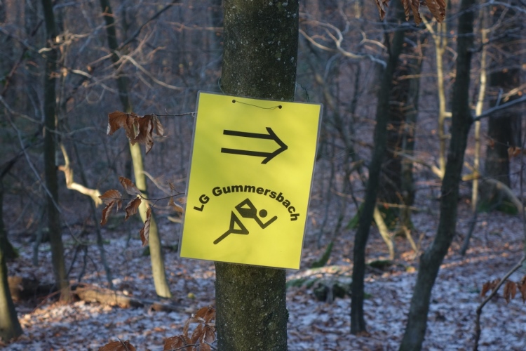 Ein Schild weist wieder auf Wurzeln hin. Und es steht auf einem orangenem zweiten Schild wieder: Achtung Cross. Ja hier ist Cross drin wo Cross drauf steht denke ich mir. Schön, dass der Veranstalter weiter den Begriff Cross verwendet und nicht den landauf und landab neudeutschen Begriff des Trails benutzt. Für die Jüngeren: Früher hießen solche Läufe auch mal Waldlauf. Aber das ist ganz lange her.
