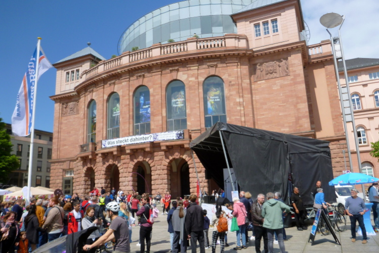 Zuvor treibt mich die Neugier in die Innenstadt, wo ich mir einiges anschaue. Rund um den Dom findet gerade ein Wochenmarkt statt. Viele Einheimische decken sich mit frischer Ware ein und Touristen sind auf Besichtigungsgängen unterwegs. Ein paar Meter weiter am Gutenbergplatz gibt es die Aktion LebensLauf, mit der auf Menschen im Schatten des Lebens aufmerksam gemacht werden soll. Mit Sicherheit ungebeten hat sich gleich daneben die AfD aufgestellt.