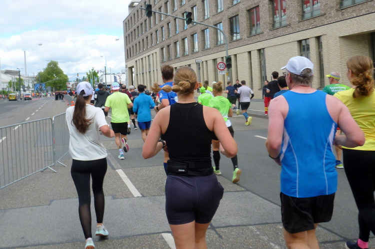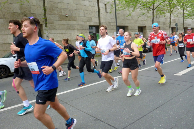 Am nächsten Tag bin ich frühzeitig vor Ort. Den Start des 10 Kilometerlaufes um 08.20 Uhr verpasse ich um wenige Minuten. Die Spitze sehe ich an der Brückenauffahrt zur Theodor-Heuss-Brücke nach Kilometer drei und gut 20 Minuten später im Zieleinlauf an der Großen Bleiche.
