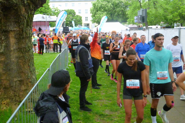 Meine gemeldete Zeit reicht leider nicht für den Block Anton, weil der M4Y-Anton als Fotograf länger unterwegs sein wird, als die geforderten 1.50 Stunden. Ich habe eine Zielzeit von zwei Stunden gemeldet und finde mich im Block Conni wieder, die beiden Pacer Mara und Andreas sind in Sichtweite.