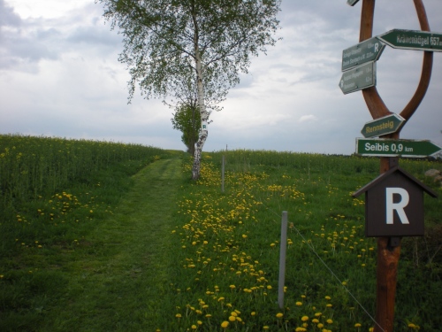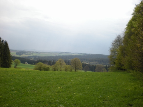 Der Kulmberg (726 m) wird auf einem Waldweg südlich umgangen. Die Strecke überquert die Straße oberhalb von Schlegel und es geht vom Waldrand über einen Feldweg hinab zum Ortsausgang. Hier befindet sich die letzte Getränkestelle (km 43,0). Die Wanderstrecke führt über einen absolut einmaligen Wiesenweg..