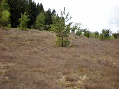 Es geht nun über den Schönwappenweg (Grenze zwischen Thüringen und Bayern). Links ist der Grenzstreifen, der von Thüringen gekauft wurde und der sich nun als grünes Band und einzigartiges Biotop durchs Land zieht. Trockene Heidelandschaft kennzeichnet den einztigen Todesstreifen. Einige der kunstvollen Grenzsteine halten mich auf. Alle 50 Meter stehen neue und alte Steine. An jedem Stein steht eine Telefonnummer, dort kann man sich über jeden Stein informieren. Oh hätte ich doch mehr Zeit!