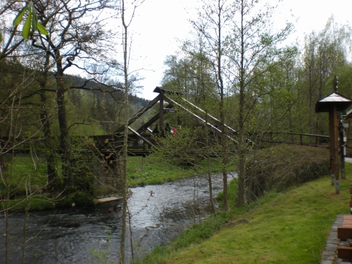 Vorbei an den "Drei Eichen" und dem Denkmal "Der Rennsteigwanderer" bergab durch Blankenstein bis zum Ziel. Steil, sehr steil, dann noch Treppen, dann ist das Ziel in Blankenstein am Selbitzsteg, direkt an der Saale, dem Beginn des Rennsteigs, nach 52,6 km erreicht.