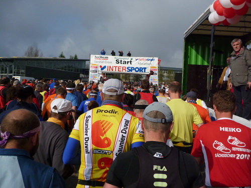 Dabei ist das Läuferfeld mit ungefähr 3000 Teilnehmern deutlich größer als beim Supermarathon. Es wird also Zeit, das Marathon-Unikum mit den 43,5 Kilometern auf unserer Seite wieder einmal angemessen zu präsentieren. Und wer macht’s? Wie immer: Was sonst keiner will, bekomme ich.