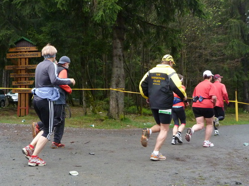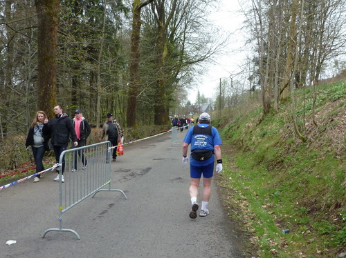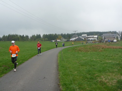 Das Wetter hält, aber die Sonne ist längst hinter einer geschlossenen Wolkendecke verschwunden. Die Temperaturen sind angenehm, Wind geht kaum. Ich bin mit meiner nicht ganz freiwilligen Kleiderordnung ganz zufrieden. Überhaupt muss ich mich unterwegs mehr als einmal dafür loben, diese Strecke gewählt zu haben. Ich bin einfach begeistert von der Landschaft, den Menschen und der ganzen Atmosphäre. Dass mein Vergnügen heute im Vergleich zum Supermarathon 29 Kilometer kürzer ist, muss ich verschmerzen.