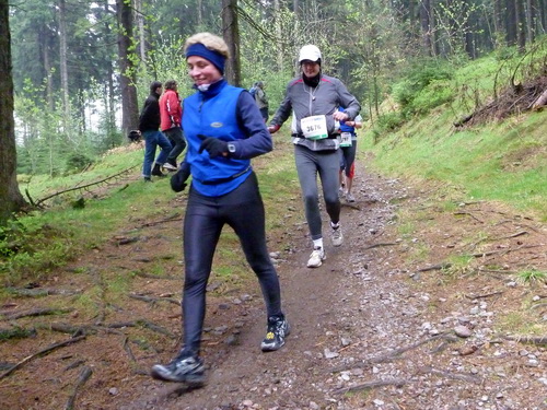 Jetzt geht es fast nur noch abwärts. Gut, wer noch was drauf hat. Blöd, wer hier marschieren muss. Bald ist schon die Musik vom Ziel in Schmiedefeld zu hören. Das beflügelt.