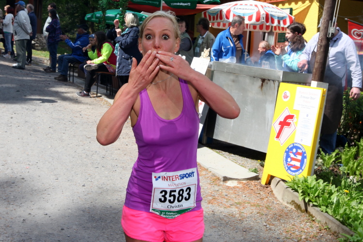 Gleich zwei Schmalzbrote greift sich ein Läufer und ich frage ihn, wann er das zum letzten Mal gegessen hat. „Letztes Jahr, hier beim Rennsteig“. Genau das meine ich. Überall macht der Läufer einen Bogen um Fett und überflüssige Kalorienbomben – beim Rennsteig ist alles erlaubt. Hey, macht Euch doch mal einen Spaß und fragt beim Berlin Marathon, wo es die Salamibrötchen gibt.