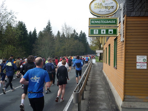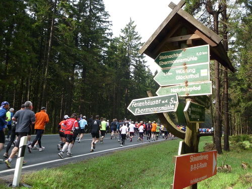 Das Ganze heißt zwar „Lauf“, wird der Veranstaltung aber nicht gerecht. Es ist ein Festival, das sich über eine ganze Region verteilt. Egal, ob man in Oberhof (Halbmarathon), Neuhaus (Marathon, 50 km Marsch) oder Eisenach (Supermarathon) an den Start geht, immer gehören ein Fest „vor und danach“ dazu. Nirgendwo bereitet man sich auf einen Lauf mit so viel Bier und Kalorien vor, wie hier. Und nirgendwo wir danach dermaßen abgefeiert. Die Verletzungsgefahr ist beim Tanz auf Bänken und Tischen mindestens genauso groß wie auf der Strecke und mancher weiß am Sonntag nicht, woher er den Muskelkater hat: vom Laufen oder Tanzen?