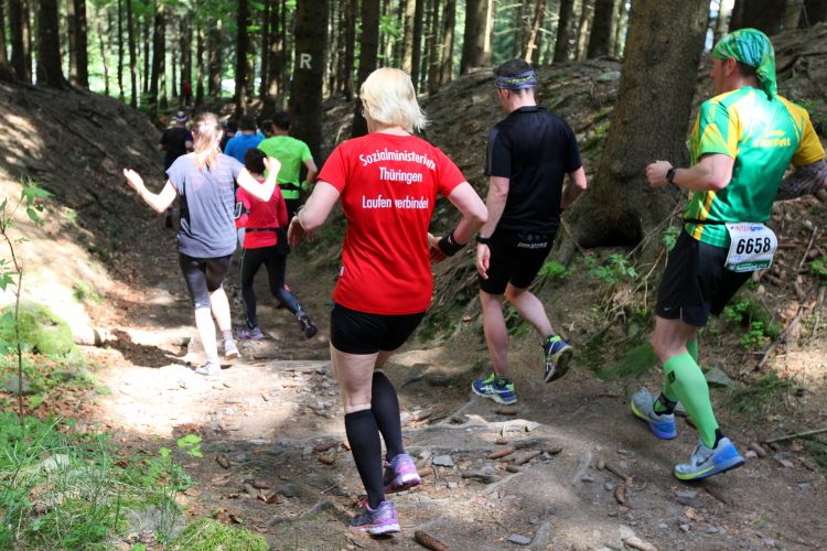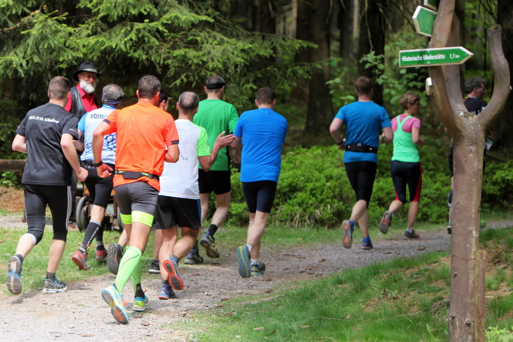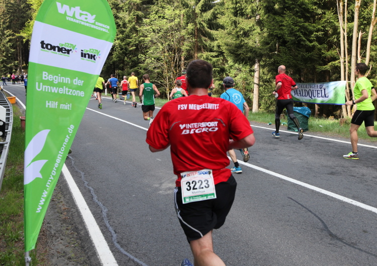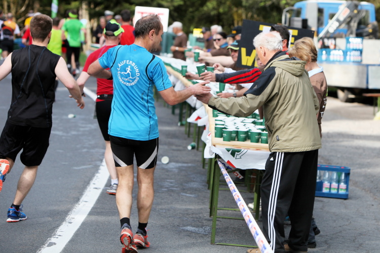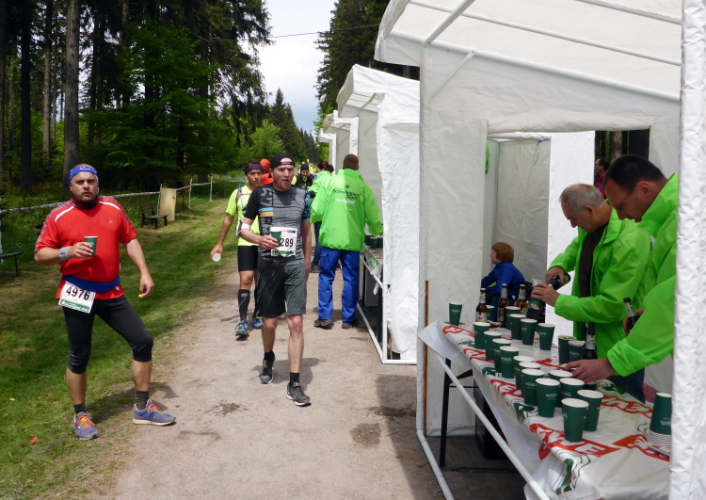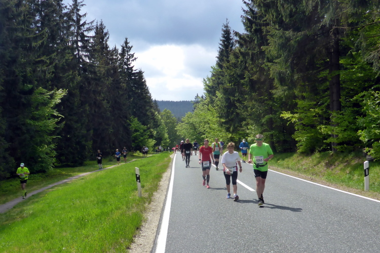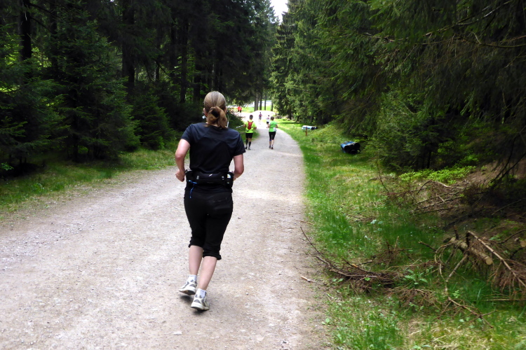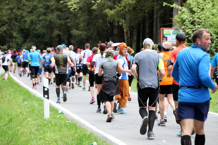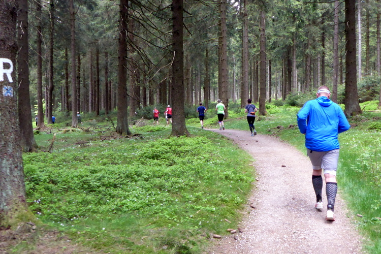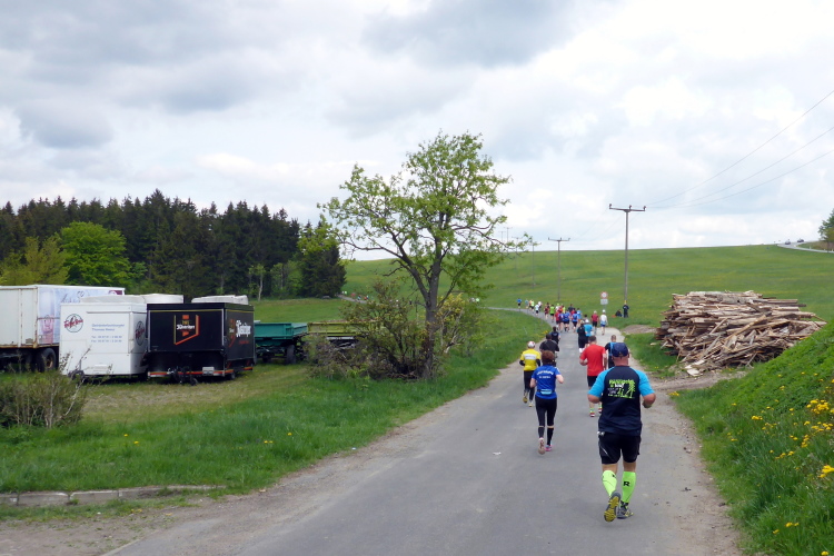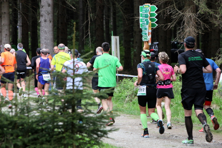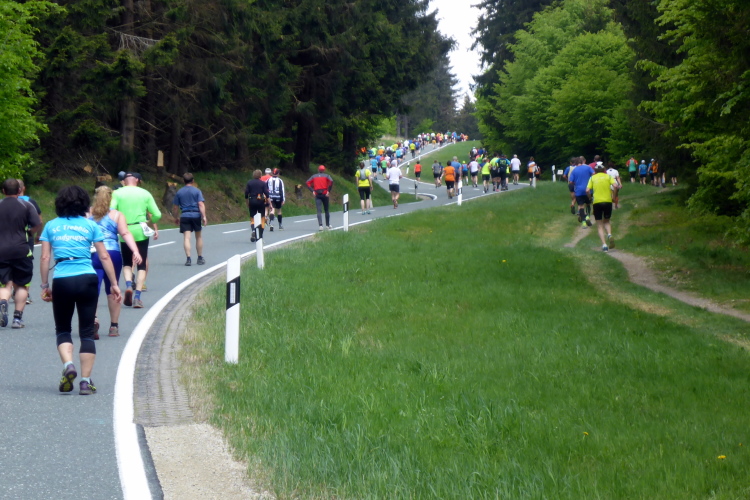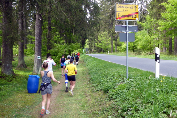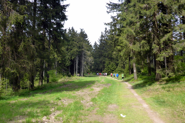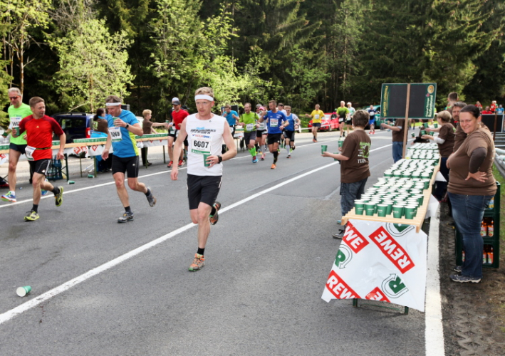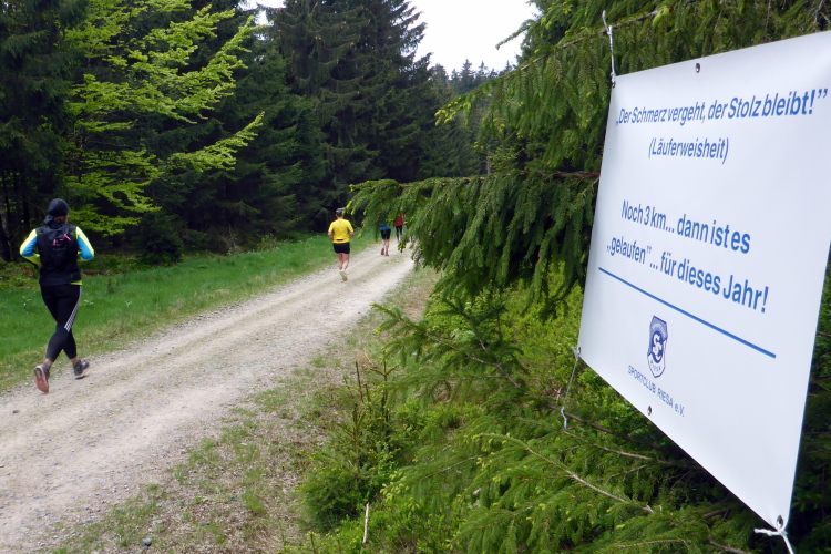Nach einer kurzen Pause mache mich wieder auf den Weg. Ich möchte möglichst schnell den letzten Verpflegungspunkt erreichen, an dem der Veranstalter den Rennsteig-Läufern echtes Bier spendiert. Mit Tee und Apfelschorle bin ich jetzt durch.