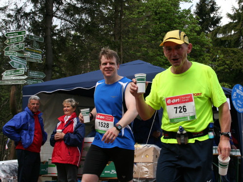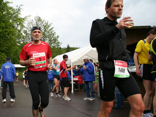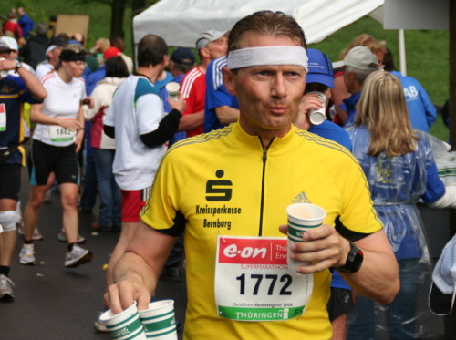 Eingangs habe ich schon erwähnt, dass viele Thüringen mit gutem Essen in Verbindung bringen. Da versteht es sich von selbst, dass die Rennsteigläufer nach Landesart verköstigt werden. Die Kloßparty (in Eisenach zum Beispiel im Festzelt gleich beim Markt) hat Kultstatus wie der Lauf selbst. Dazu wird soviel Bier (blond oder schwarz) getrunken, wie vor keinem Lauf anderswo. Spielen da auch die Preise eine Rolle? Zumindest die Wessis reiben sich manchmal verwundert die Augen.