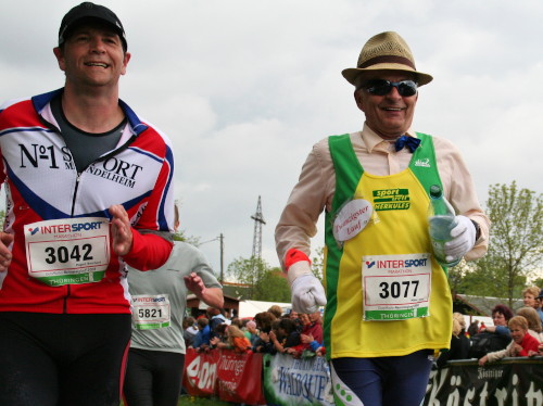 Dass es sich bei soviel „Drumherum“ um einen ernsthaften Wettkampf handeln soll, kann man kaum glauben. Ist aber so. Dennoch, die Rekordjagd nimmt man nicht so wichtig, dass man dazu extra Läuferinnen und Läufer aus Kenia oder Äthiopien einfliegt. Die Bühne gehört den local heroes, den Breitensportlern und Hobbyläufern – und das ist gut so.