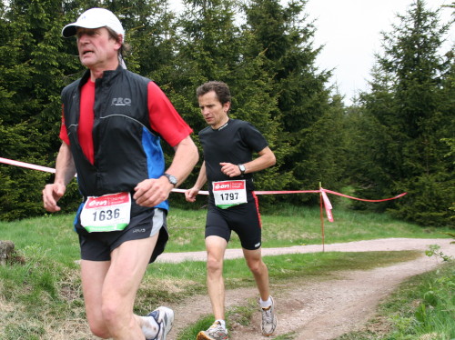 Ein weiteres Rennsteig-Phänomen sind die Teilnehmer, genauer gesagt deren Treue zu dem Kultlauf. Ich behaupte mal, dass es in Deutschland keine Veranstaltung gibt, die auf eine ähnliche „Kundentreue“ bauen kann. Es gibt mehr als 100 Läufer mit über 30 Teilnahmen und mit mehr als 25 Teilnahmen sind sogar über 500 Läufer registriert. Unzählige Läufer gehen mit einem Jubiläumsshirt (10 x dabei, 20 x Rennsteiglauf) auf die Strecke, einige bringen ihre gesammelten Startnummern als Talisman mit an die Strecke. Der Rennsteiglaufverein hat Mitglieder in ganz Deutschland. Als „Ersttäter“ bist du fast ein Exote, aber sehr gefragt als interessierter Zuhörer aller möglichen und unmöglichen Stories rund um den Lauf.
