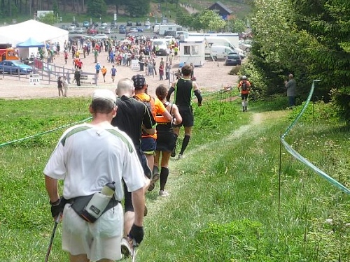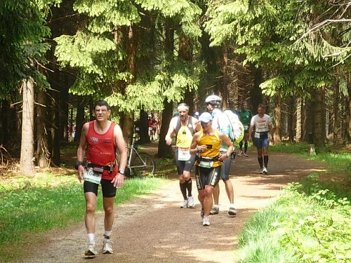 Etwa bei km 70 höre ich erstmals Lärmfetzen durch den Wald dringen. Das Ziel ruft schon. Aber ein paar Schleifen durch den Wald und durch einige Sträßlein in Schmiedefeld müssen wir uns noch durchkämpfen, ehe der Zieleinlauf in Sicht kommt.