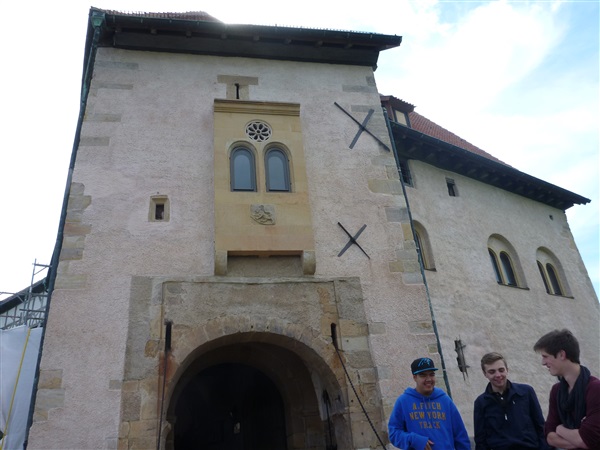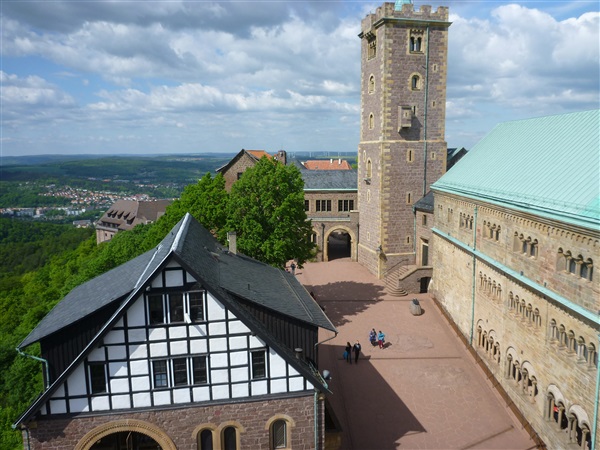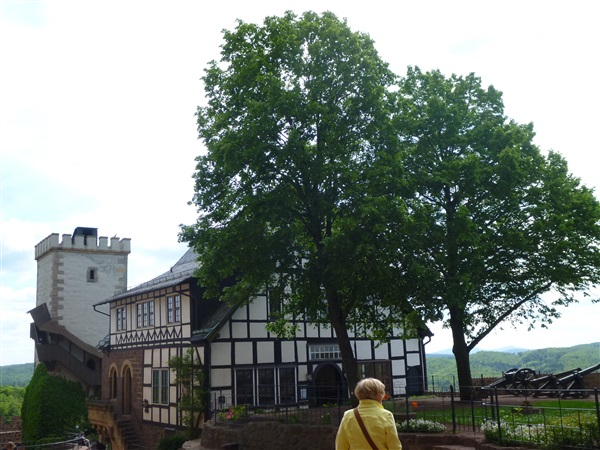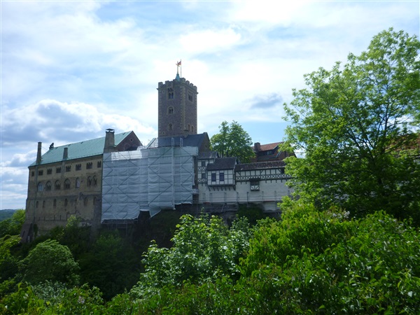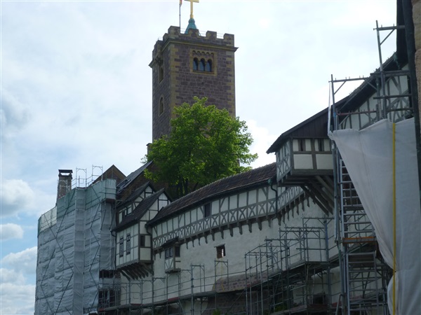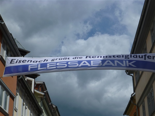 Am späten Freitagmorgen sind wir bereits vor Ort und beginnen direkt mit dem touristischen Teil, der uns auf Schusters Rappen, ohne angesichts der zu erwartenden morgigen Strapazen allzu sehr zu fordern, in die sehenswerten Drachen- und Landgrafenschluchten führt. Wo denn der Einstieg in die Drachenschlucht sei? „Nu, beim Borgblotz am Dümbel!“ Ah ja! Um 14 Uhr übergibt man uns im Herzen der Eisenacher Altstadt als eine der ersten die Startunterlagen, dann geht’s weiter, um endlich einmal die Wartburg aus nächster Nähe zu inspizieren. Dem schließt sich auch unser „kleiner“ Klaus gerne an, den wir bei der Startnummernausgabe getroffen haben. Es erscheint uns sinnvoll, die Wartburg direkt heute mitzunehmen und uns nicht nach dem Lauf am Sonntag durch große Besucherkonkurrenz quetschen zu müssen.