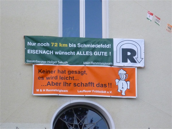 Egal, jetzt habe ich es endlich gepackt und nehme mir mit meiner Elke drei Tage Zeit, die Sache in Ruhe anzugehen. Wir treffen uns mit dem rennsteigerfahrenen Markus, der mich die 72,7 km über +1.470/-969 Höhenmeter begleiten wird, und seiner Familie in Eisenach. Geschlafen wird in der nahe gelegenen Jugendherberge. Das stößt bei meiner Gattin nicht unbedingt auf ungeteilte Begeisterung, aber, Schatz, es kann nicht immer die Schatzalp hoch über Davos sein.