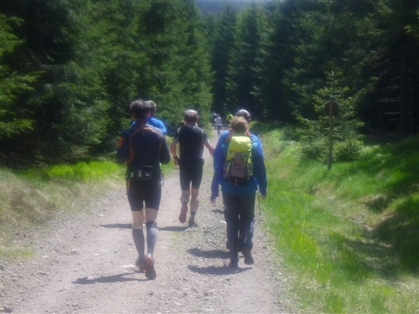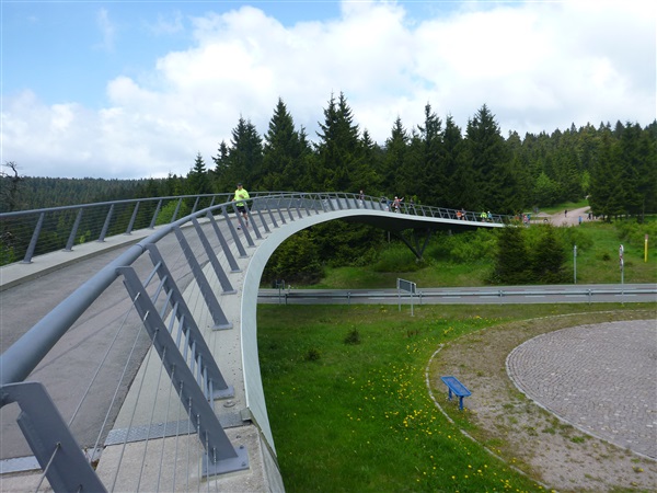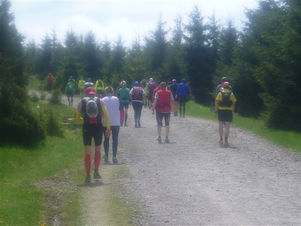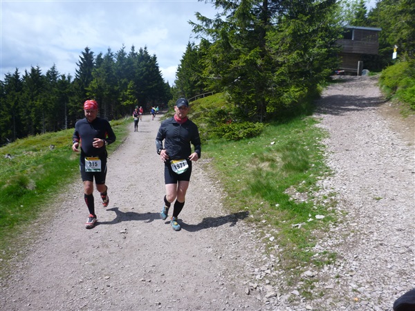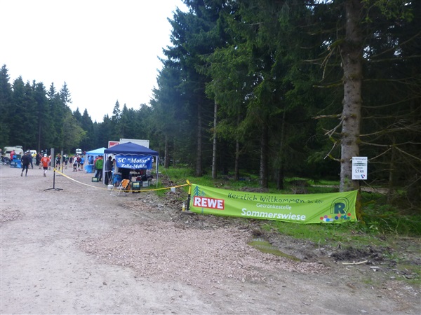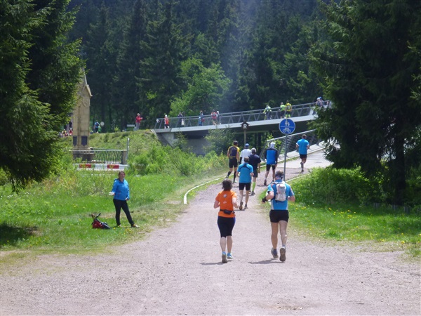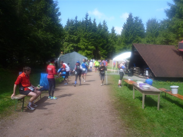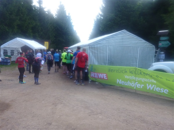 Bald danach ist an der “Ausspanne Neuhöfer Wiese” (km 45,5 / 850 m NN) die nächste Verpflegungsstation erreicht. Im munteren Auf und Ab spule ich weiter km ab, hübsch garniert mit weiteren kulinarischen Schwerpunkten, wie der an der Neuhöfer Wiese. Etliche Kollegen sitzen auf den bereitgestellten Bänken und verschnaufen. Ich verkneife mir das tunlichst und will nicht aus dem Rhythmus kommen, den ich doch einigermaßen gefunden habe.