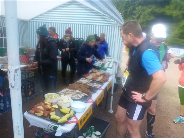 Ca. alle 5 km Getränke und alle 10 km reichhaltig zu essen.