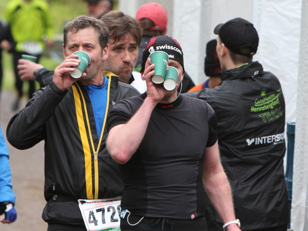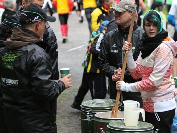 Auch ohne den Schleim kommt man das ganze Jahr aus, will das eklig klingende Gesöff beim Rennsteiglauf aber nicht missen. 3.000 Liter gehen über die Getränketische. Sowieso: Mit anderem Namen wäre der manchmal mit Waldfrüchten „getunte“ und nach Geheimrezepten gerührte Haferschleim ein leckeres Sportgetränk.
