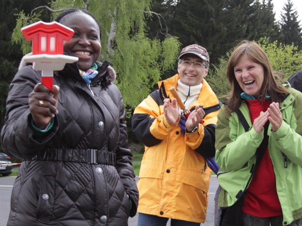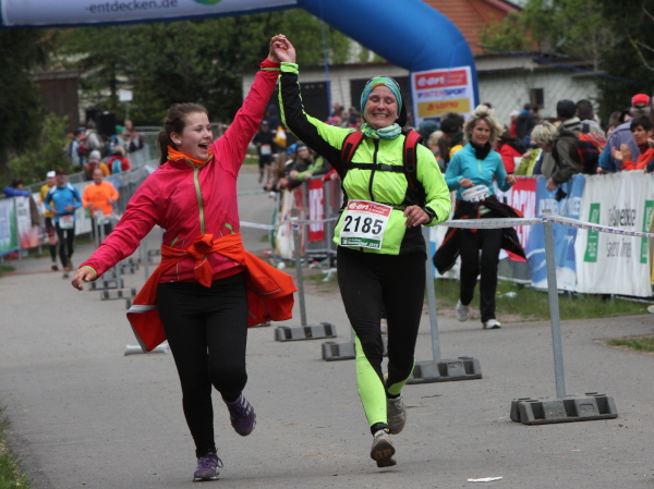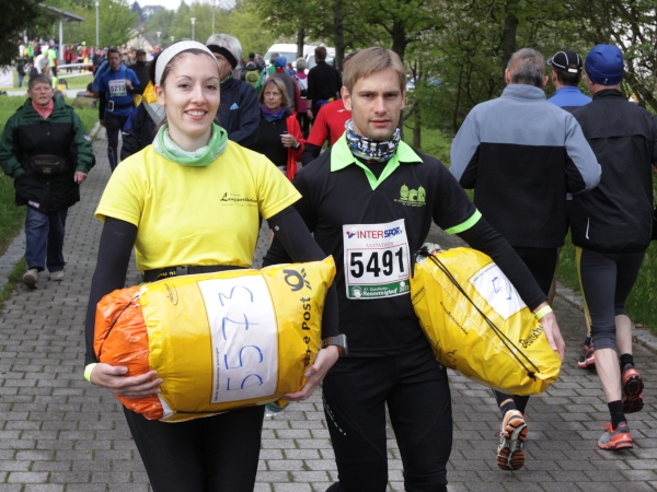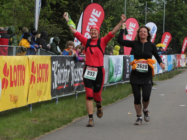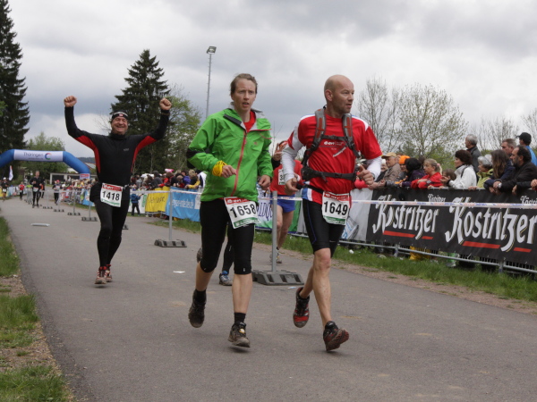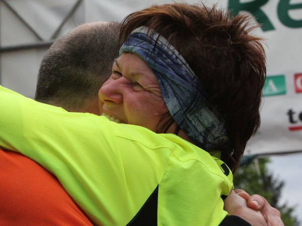 Wie ihr das gelungen ist, wisst Ihr inzwischen. Übrigens, Siggi hatte unterwegs eine kleine Schwächephase, nahm einen Zeitverlust in Kauf und gönnte sich Massage. Sonst wäre die Überraschung vielleicht nicht in vollem Umfang gelungen, denn Simone war nur 8 Minuten vor ihrem Siggi im Ziel. Phänomenal!