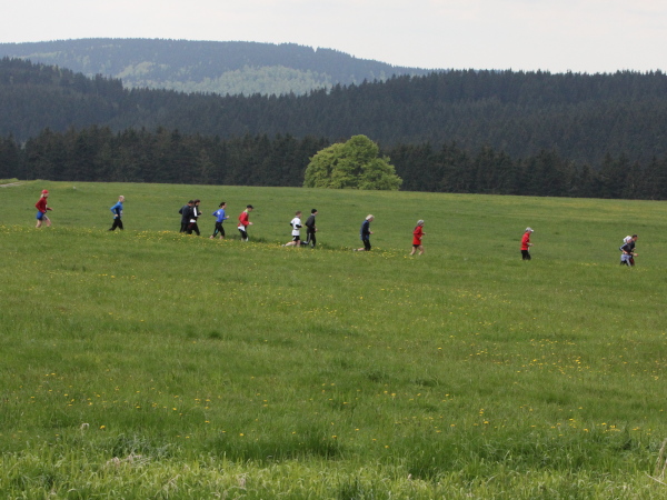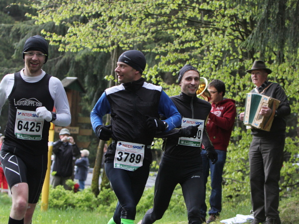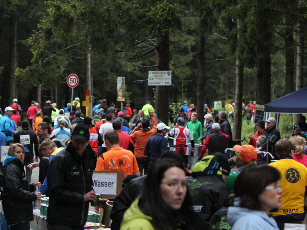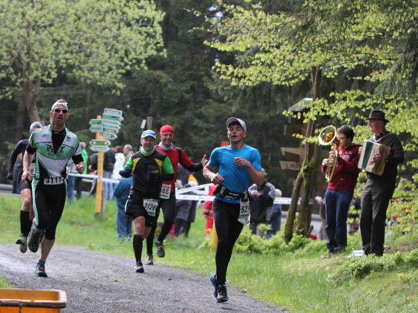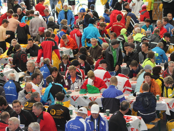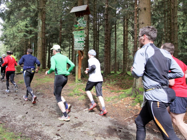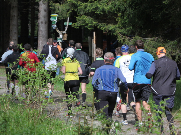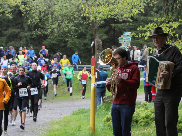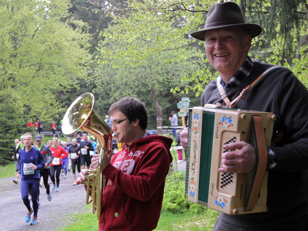 Phänomenal ist die Atmosphäre beim Rennsteiglauf, egal welchen Wettbewerb man nimmt. Wie in Eisenach und Neuhaus (diese beiden Startorte habe ich live erlebt) schon vor dem Lauf gefeiert wird, habe ich sonst noch nirgendwo erlebt. Kein Außenstehender käme angesichts der Klöße und Gulasch vernichtenden, singenden, schunkelnden und bechernden Menschen auf die Idee, dass die am nächsten Tag 43 oder 72 Kilometer plus ansehnlicher Höhenmeter laufen. Dass die legendären Schlussfeiern in Schmiedefeld und in den Startorten das alles noch einmal in den Schatten stellen, versteht sich dabei von selbst.