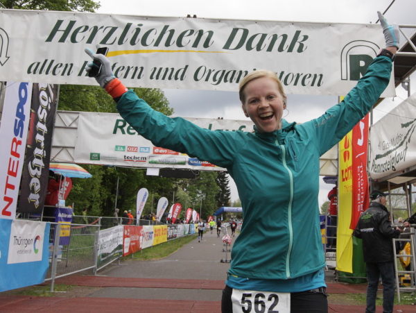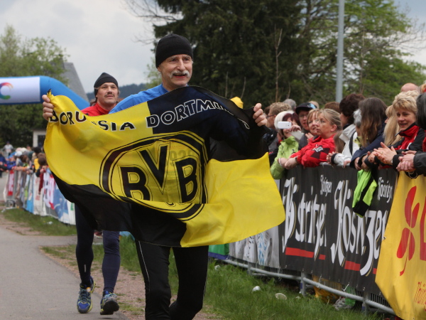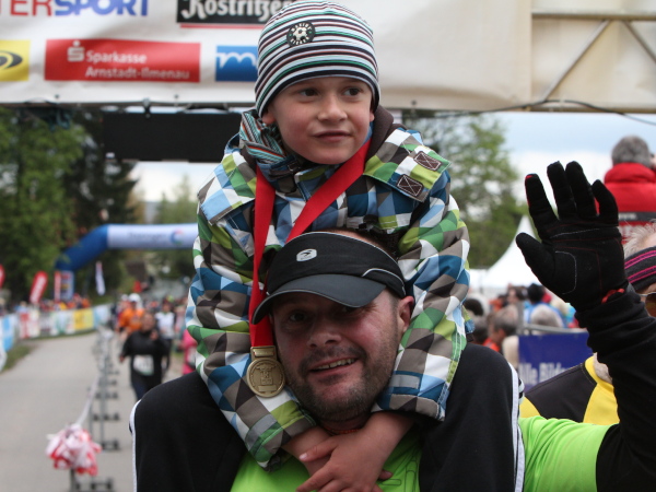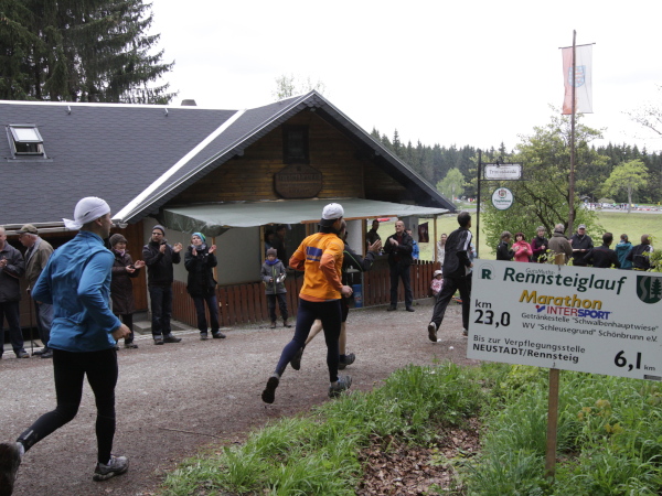 Phänomen Schmiedefeld. Keine 2000 Einwohner zählt der Ort, den kein Wessi kennen würde, gäbe es den Rennsteiglauf nicht. Als Woodstock der Läufer habe ich Schmiedefeld mal bezeichnet. Andere bezeichnen den Sportplatz, der nichts anderes als eine holprige, bei Regen noch dazu matschige Wiese ist, als schönstes Ziel der Welt. Wer noch nie den schmalen Korridor zwischen jubelnden und kreischenden Menschen hinauf auf die Festwiese, so nenne ich den Sportplatz jetzt mal, gelaufen ist, die letzten hundert Meter unter tosendem Applaus auf den Zielbogen zugerannt ist, kann das nicht verstehen. Wer schon einmal dabei war, wird es aber bestätigen. Nirgendwo laufen die Finisher glücklicher und strahlender ins Ziel, als hier in Schmiedefeld.