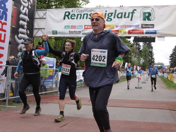 Zuerst ließ sich Siggi überreden, vom Rad auf Laufschuhe umzusteigen, dann schloss sich seine Frau an. Schneller als erwartet steigerten sie sich, durften sich Marathon-Finisher (New York, Mallorca, Luzern, Paris) nennen und waren stolz wie sonst wer. Obwohl man ihnen schon viel vom Rennsteiglauf erzählt hatte, an einen Lauf mit so vielen Höhenmetern trauten sie sich lange nicht. Schließlich war es Siggi, der sich 2010 zum Supermarathon überreden ließ. Er kam in Schmiedefeld an, war begeistert und kam in den folgenden Jahren wieder.