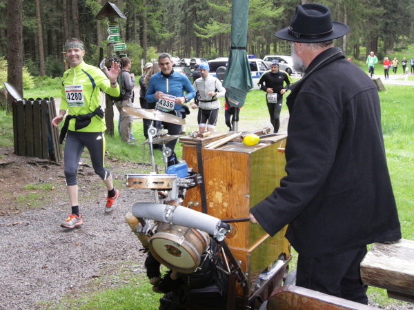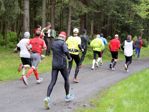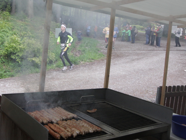 Phänomenal ist auch die Verpflegung. Es gibt alles, was Ernährungsberater, Trainer und andere Fachleute in die Tonne kippen: Wurst- und Schmalzbrote, Würstchen und Bier. Wer Appetit und Zeit hat, kriegt an einer privaten Grillstation auch schon mal ´ne Bratwurst ab. Ich kenne Leute, die kommen das ganze Jahr ohne diese Kalorienbomben aus, schlagen beim Rennsteiglauf aber erbarmungslos zu und laufen mit einer positiven Kalorienbilanz ins Ziel.