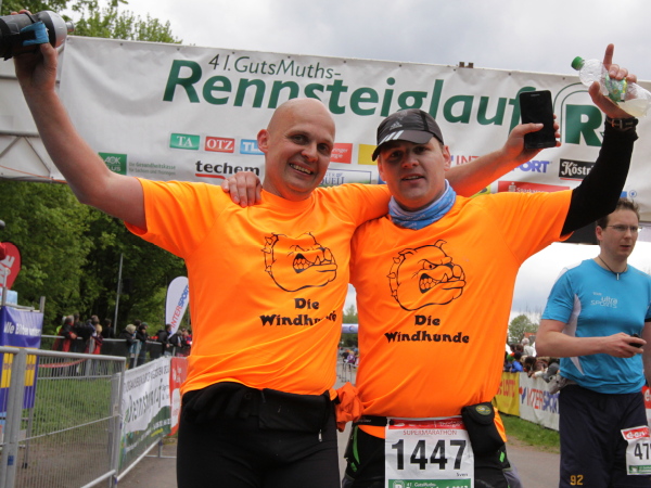 Die nächste phänomenale Statistik: Nur etwas mehr als 100 Läuferinnen und Läufer erreichen ihr Ziel nicht und steigen vorher aus. Und das bei anspruchsvoller Laufstrecke und oft widrigen Witterungsverhältnissen. Aber diesmal gibt es eine Erklärung. Oder zwei, oder drei oder vielleicht doch wieder keine. Jedenfalls sind Rennsteigläufer keine Weicheier. Egal welche Distanz, wer sich darauf einlässt, zieht es durch und genießt, die Sollzeiten (z.B. 12 Stunden beim Supermarathon und 9 Stunden beim Marathon) sind moderat. Man muss sich nicht auf der ersten Hälfte überfordern, um dann auf der zweiten schlapp zu machen.