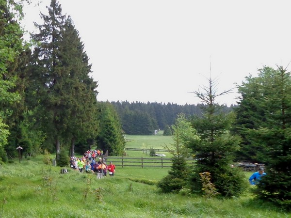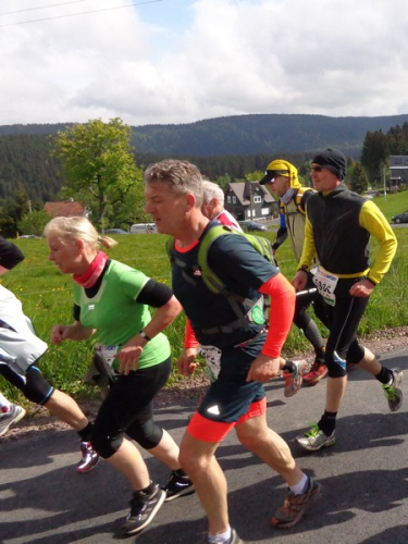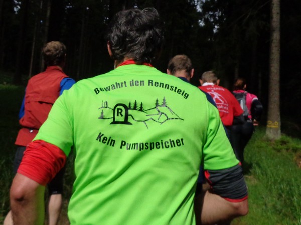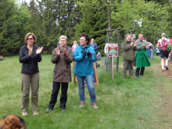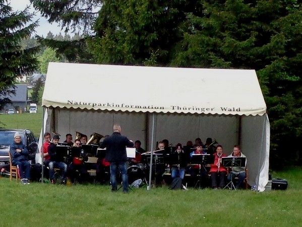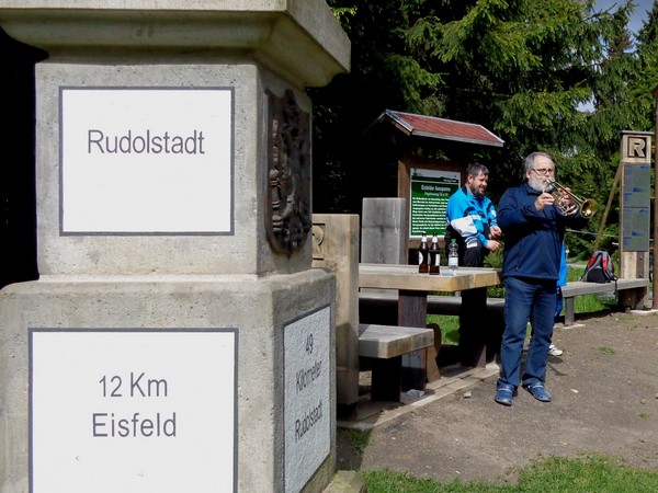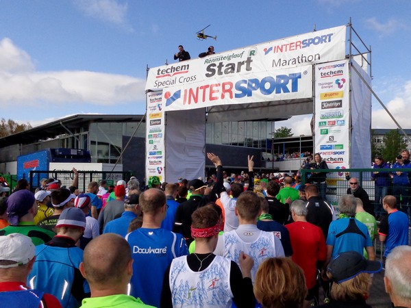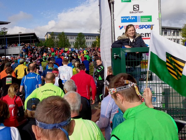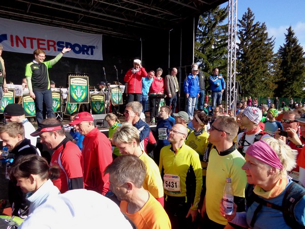 Immer mehr finden sich nun am Sportplatz ein, wo längst Hans-Georg Kremer den Ton angibt. Mit ihm auf der Bühne, die Lichtethaler Musikanten. Ein Silberhochzeitsehepaar wird auf die Bühne gebeten, die Thüringer Ministerpräsidentin wird den Startschuss abfeuern. Doch vorher wird gesungen, und zwar alle! Natürlich das Rennsteiglied, die Hände zum Himmel. Günter knipst von der Bühne aus.