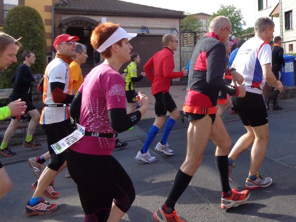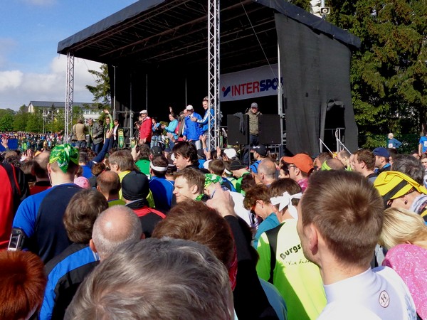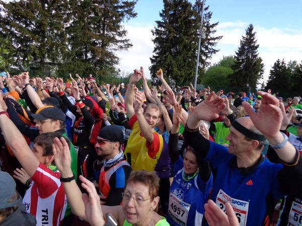 Mit meiner Kleiderwahl bin ich zufrieden. Entgegen meiner Gewohnheit habe ich heute keinerlei persönliche Verpflegung dabei, kein CarboBeutelchen, und kein Fläschchen mit Wasser oder Iso. Heute muss alles vom Veranstalter kommen und ich bin zuversichtlich dass das ausreichend ist. Ich verlasse mich da ganz auf die Reporter-Kollegen, die hier schon gelaufen sind und berichtet haben.