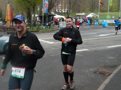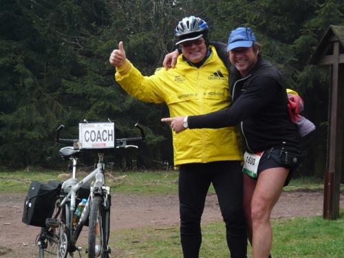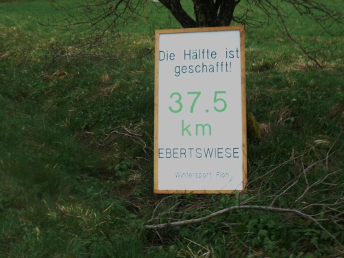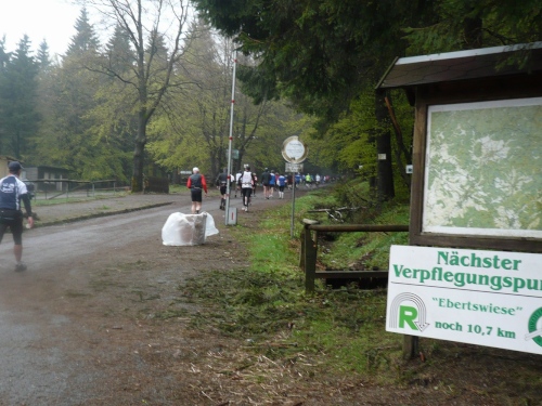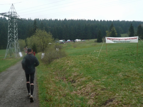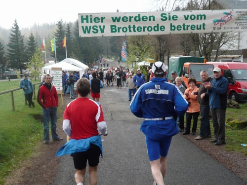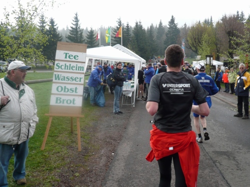 Am Grenzadler ist die Möglichkeit des Ausstieges mit Zeitnahme gegeben. Ein Transport mit Kleinbussen zum Zielort Schmiedefeld wird vom Organisator gestellt. Doch ab hier ist es nur noch ein Halbmarathon bis nach Schmiedefeld, und Brigitte sagt: „Ein Halbmarathon geht immer!“ Also schnell an Oberhof vorbei zum "Rondell" ( Km 56 / 826 m).