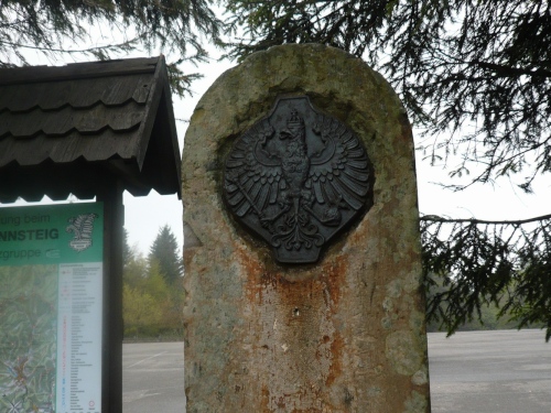 Über Krämerod (Km 42 / 765 m) geht es wieder bergauf zur „Schmalkalder Loipe“ (Km 45 / 881 m) und zur „Ausspanne Neuhöfer Wiese“. Am 50 km-Schild ein kurzer Blick hinüber zum Gipfel des Donnershaug. Auf dem befindet sich eine altgermanische Kultstätte, die dem Donnergott Donar geweiht war.