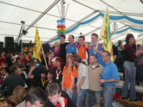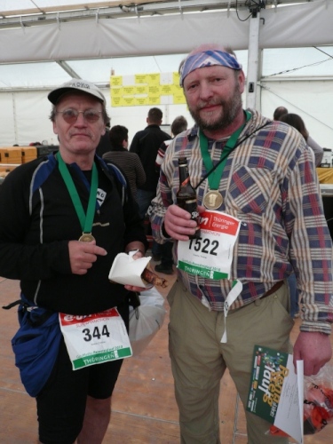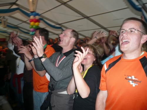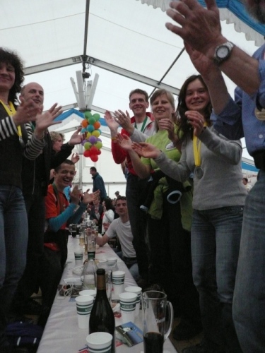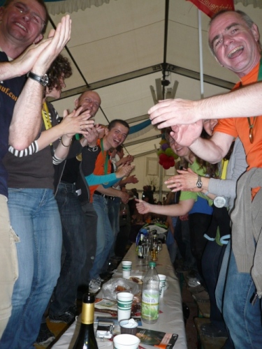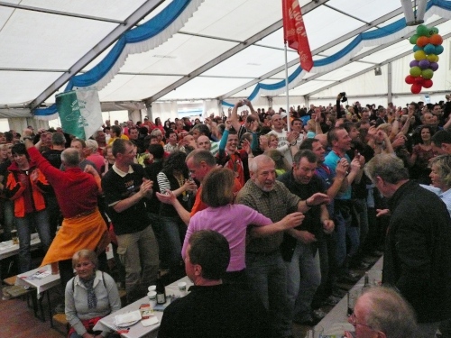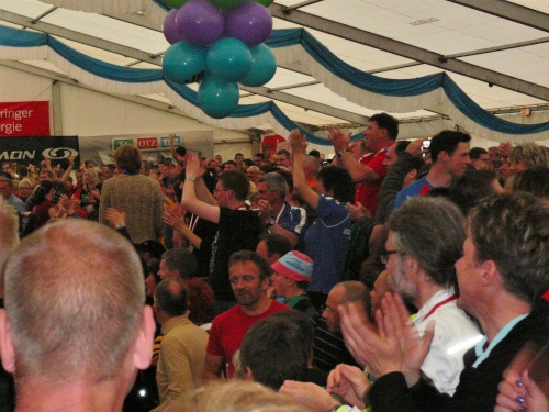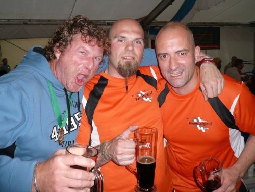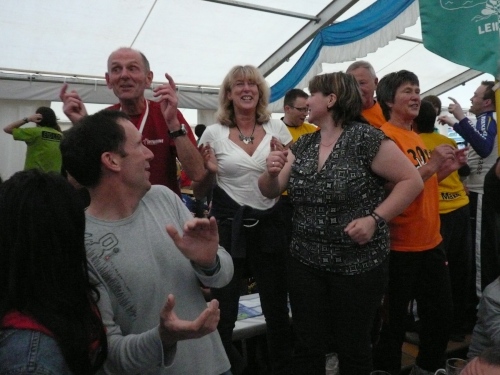 Der wahre Ultraläufer offenbart sich aber im Anschluß: Wenn um 18 Uhr das Drummercorps in das Festzelt einzieht, beginnt der Tanz auf den Bänken und Tischen. Es beginnt die schönste Party der Welt. Plötzlich kann der Läufer wieder hüpfen und springen, die Hände klatschen im Rythmus, ungeahnte Kräfte werden hier für viele Stunden freigesetzt.